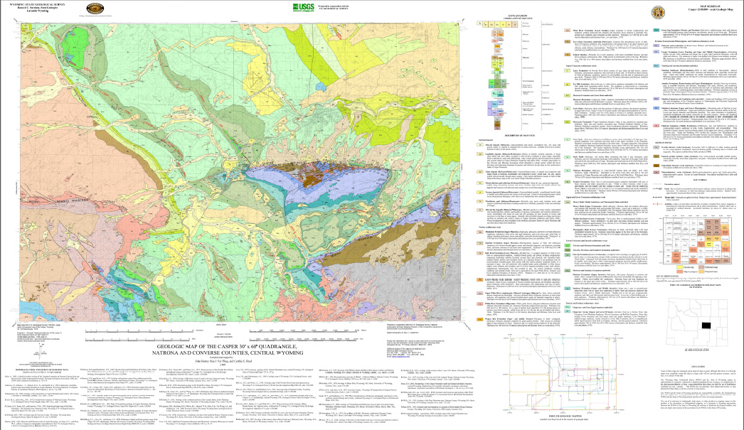 Hunter, John, Ver Ploeg, A.J., and Boyd, C.S., 2005, Geologic map of the Casper 30' x 60' quadrangle, Natrona and Converse counties, Wyoming: Wyoming State Geological Survey Map Series 65, scale 1:100,000.