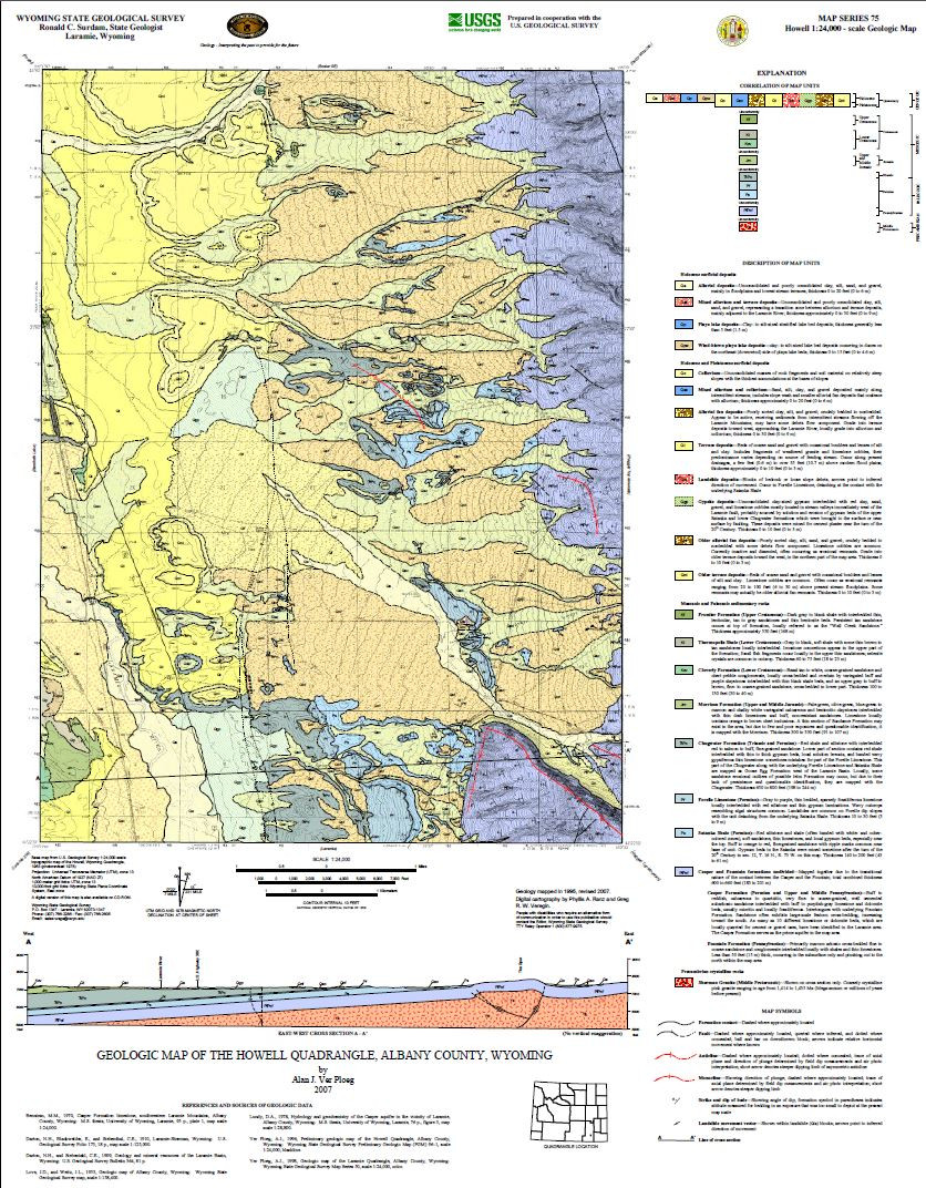 Ver Ploeg, A.J., 2007, Geologic map of the Howell quadrangle, Albany County, Wyoming: Wyoming State Geological Survey Map Series 75, scale 1:24,000.