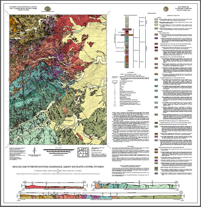 | Bibliographic Reference | Frost, B.R., Snyder, G.L., Lindsley, D.H., Scoates, J.S., and Anderson, C.I., 2021, Geologic map of the Poe Mountain quadrangle, Albany and Platte counties, Wyoming: Wyoming State Geological Survey Map Series 106, scale 1:24,000. |