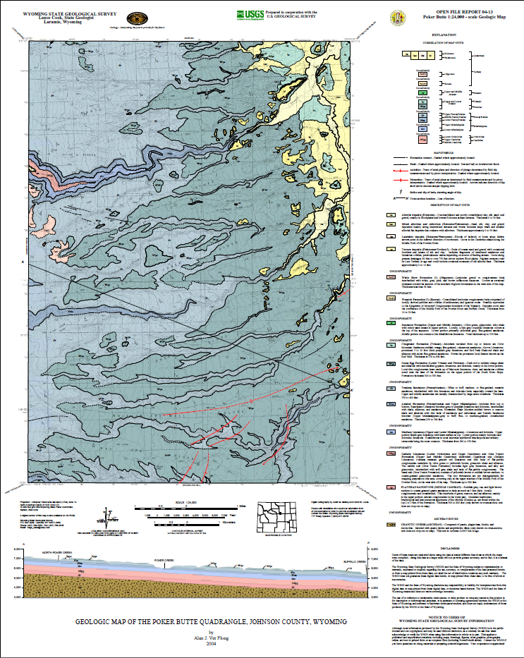 Ver Ploeg, A.J., 2004, Geologic map of the Poker Butte quadrangle, Johnson County, Wyoming: Wyoming State Geological Survey Open File Report 04-13, scale 1:24,000.