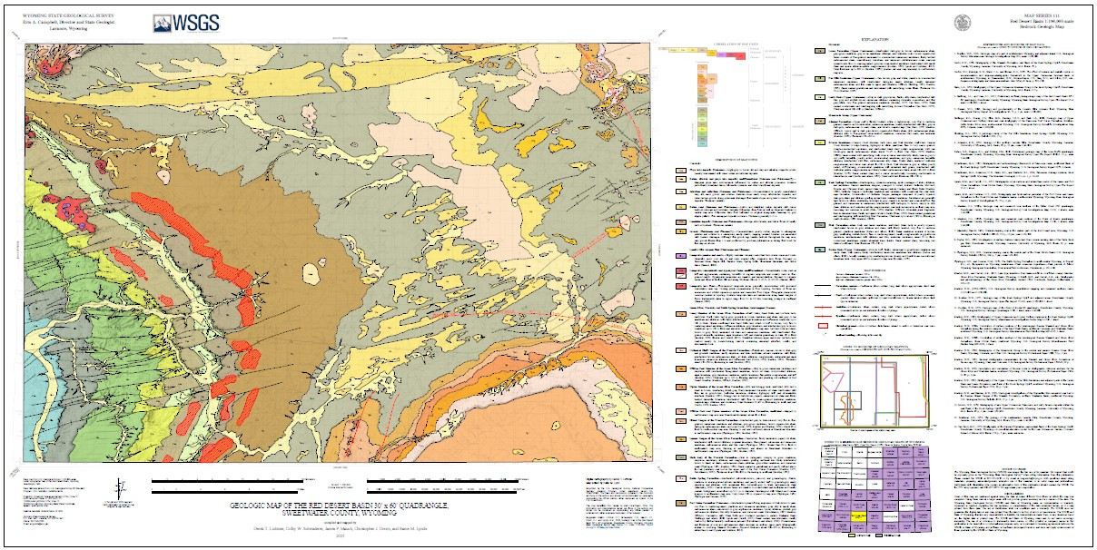 | Bibliographic Reference | Lichtner, D.T., Schwaderer, C.W., Mauch, J.P., Doorn, C.J., and Lynds, R.M., 2025, Geologic map of the Red Desert Basin 30' x 60' quadrangle, Sweetwater County, Wyoming: Wyoming State Geological Survey Map Series 111, scale 1:100,000, https://doi.org/10.15786/wyoscholar/10066. |