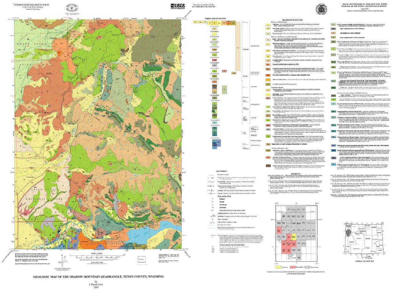 Love, J.D., 2001, Geologic map of the Shadow Mountain quadrangle, Teton County, Wyoming: Wyoming State Geological Survey Love Map Series 7, scale 1:24,000.
