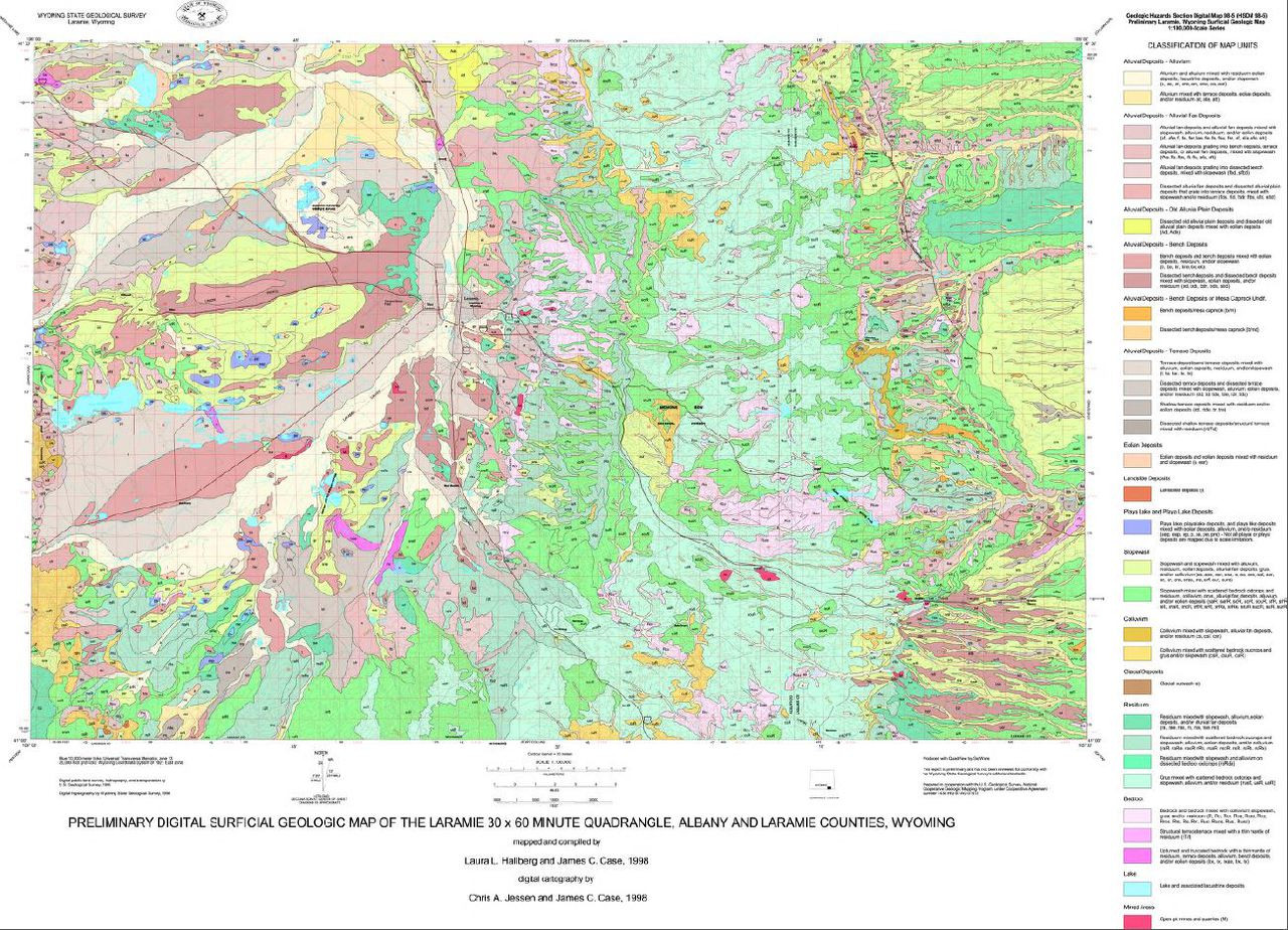 | Bibliographic Reference | Hallberg, L.L., and Case, J.C., 1998, Preliminary digital surficial geologic map of the Laramie 30' x 60' quadrangle, Albany and Laramie counties, Wyoming: Wyoming State Geological Survey Hazards Section Digital Map 98-5, scale 1:100,000. |