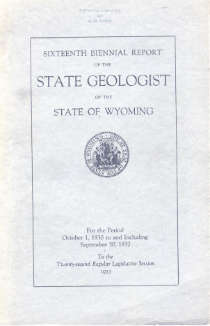 Marzel, J.G., 1932, Sixteenth biennial report of the State Geologist of the state of Wyoming: Office of the State Geologist [Wyoming State Geological Survey] 1930–1932 Biennial Report, 123 p., 1 pl.