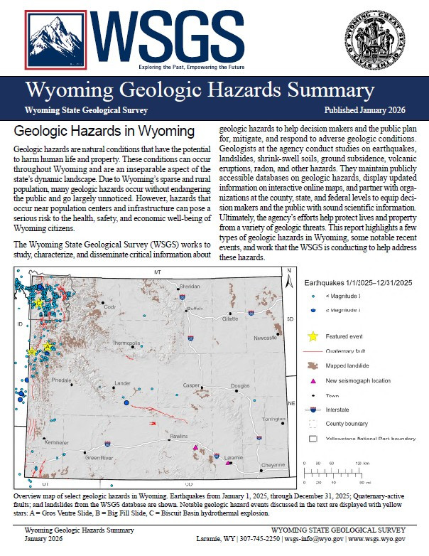 Wyoming State Geological Survey, 2026, Wyoming Geologic Hazards Summary: Wyoming State Geological Survey Summary Report, 4 p.